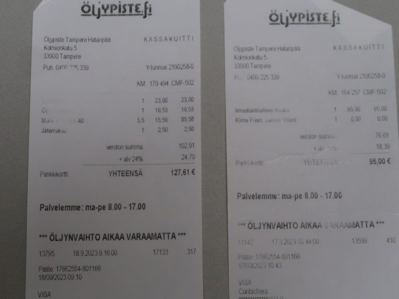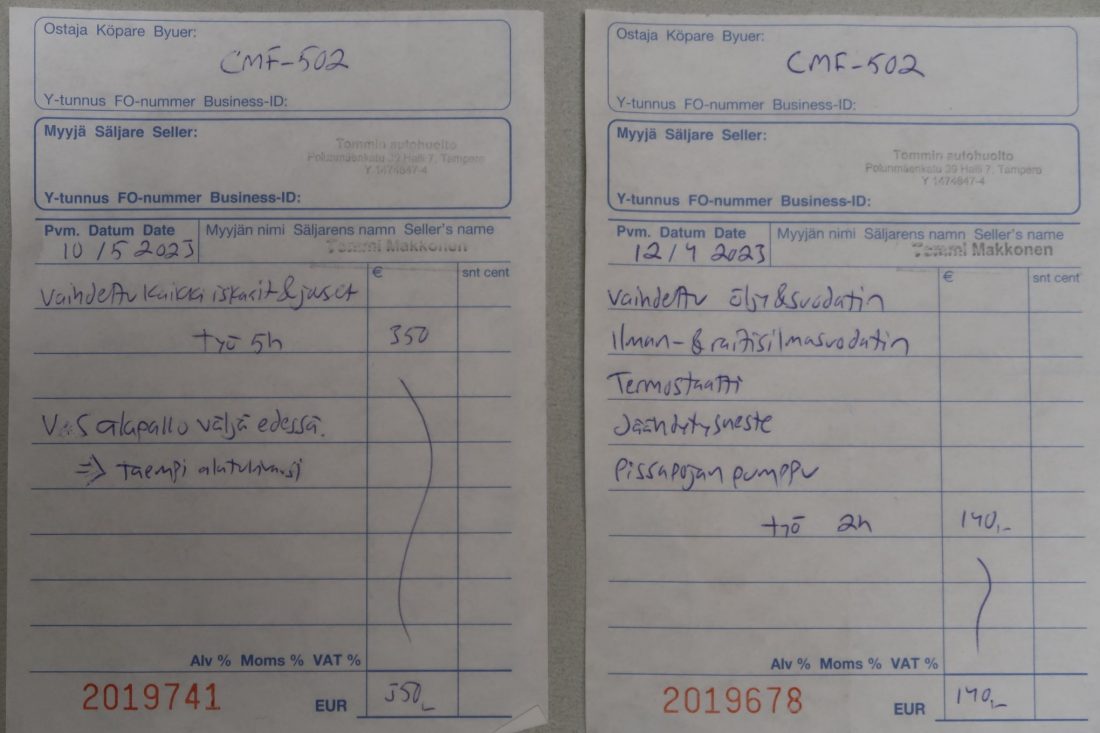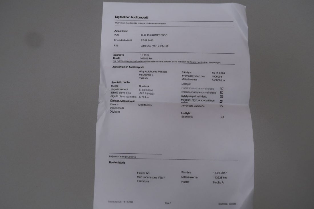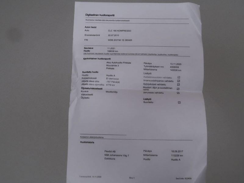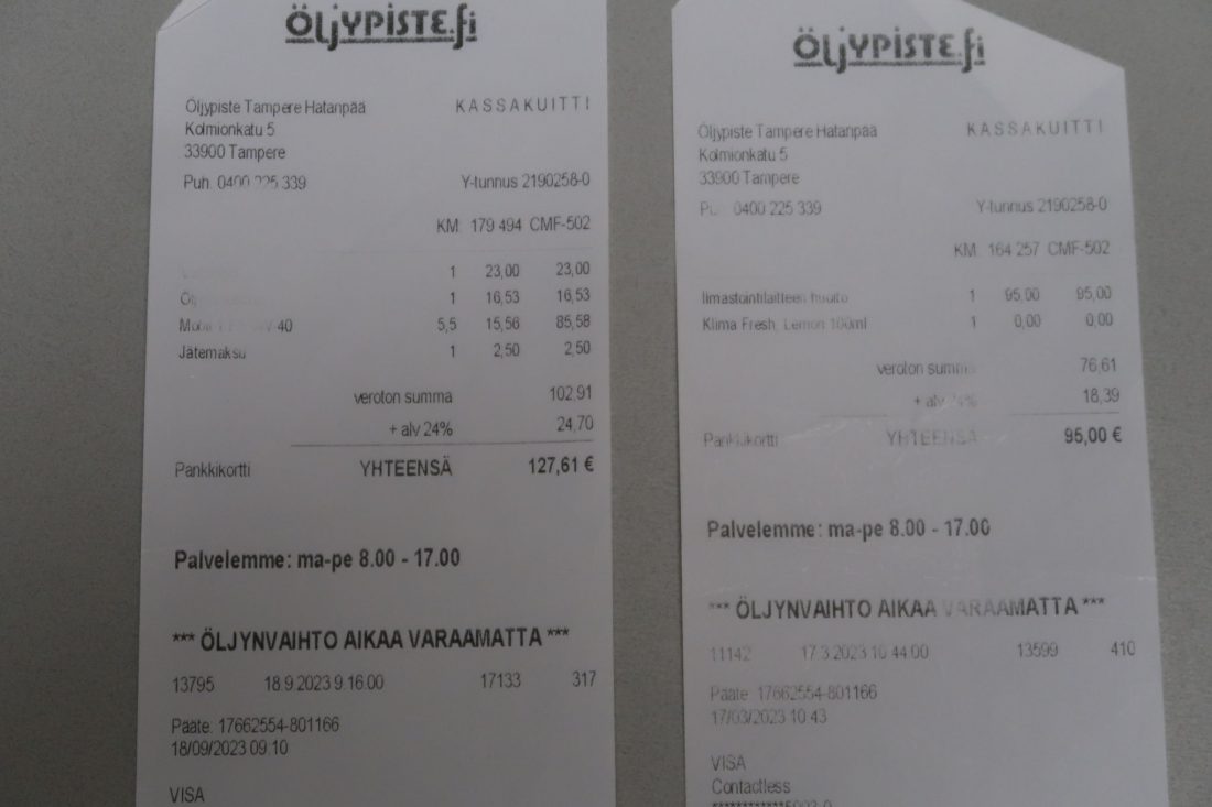 Viimeinen huolto tehty 26.2.2025 189391km:ssä. Katsastettu 15.7.2025