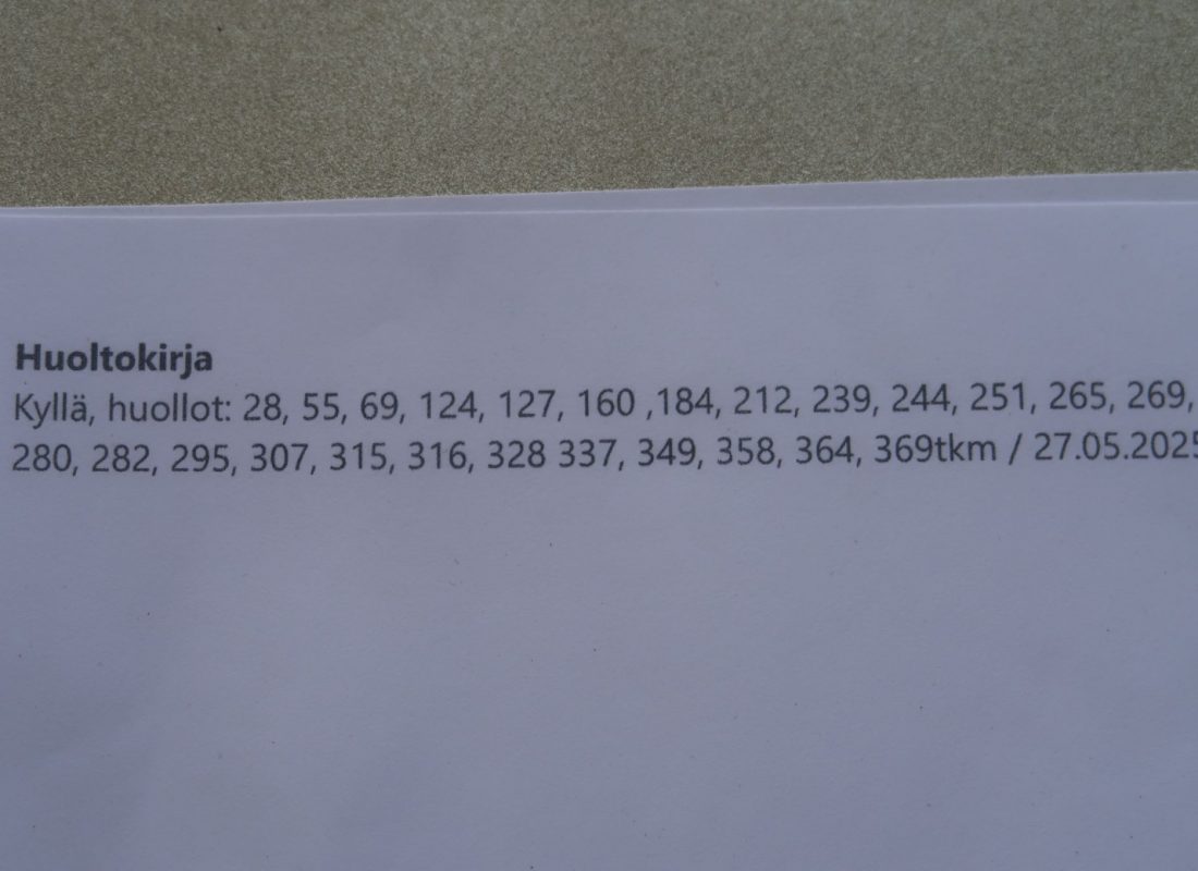 Viimeinen huolto jossa vaihdettu myös jakohihna 28.3.2026. Katsastettu 2.4.2026
